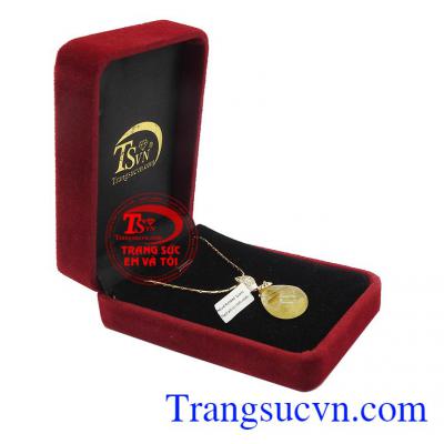 Mặt dây thạch anh tóc vàng may mắn là sản phẩm thạch anh thiên nhiên, có giấy kiểm định chất lượng. Thạch anh tóc đem lại cho người đeo tinh thần minh mẫn, lạc quan, tích cực. Đồng thời giúp đem đến nhiều may mắn trong kinh doanh. Mặt dây thạch anh tóc vàng may mắn vàng 14k, bảo hành 12 tháng, giao hàng nhanh trên toàn quốc.