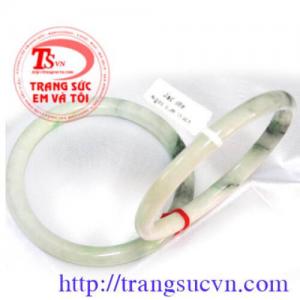 Đôi vòng tay làm từ ngọc cẩm thạch thiên nhiên, màu trắng sáng xen kẽ cá dải màu lục tươi, màu xám - sám nhạt mang lại sự trẻ trung năng động.
