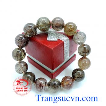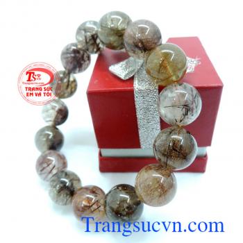 Chuỗi thạch anh tóc nâu đỏ 15 hạt đẹp