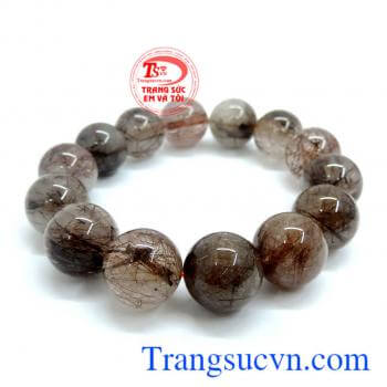 Chuỗi thạch anh tóc nâu đỏ hạt to sang trọng