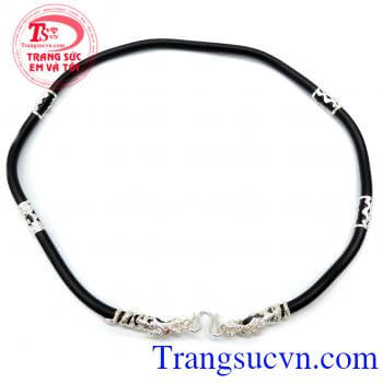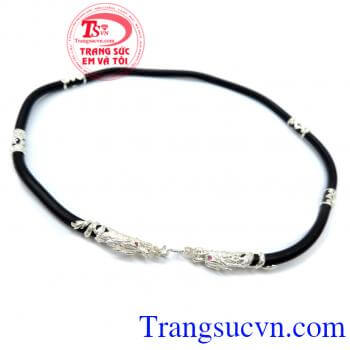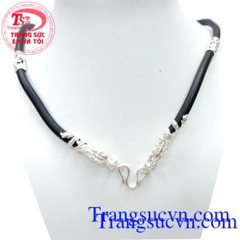 Dây cao su bạc bọc bạc rồng: loại dây trơn, kết hợp với hai đầu dây bạc hình con rồng rất đẹp , phù hợp để đeo các mặt dây chuyền bạc nam, thể hiện sự đẳng cấp của phái mạnh