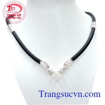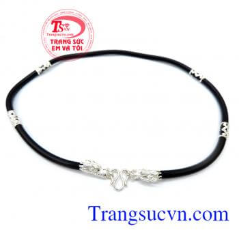 BánDây cao su bọc đầu rồng,Dây cao su bọc đầu rồng loại trơn kết hợp với 4 đốt bạc hình rồng chất liệu bạc ta 925 cao cấp, rất phù hợp để đeo các mặt dây chuyền nam.