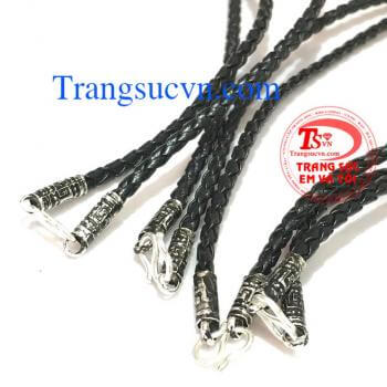Hình ảnh: Dây chuyền da bọc bạc, dây da đen bọc bac ta, dây chuyền nữ, dây chuyền nam