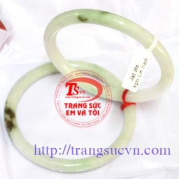 Đôi vòng tay làm từ ngọc cẩm thạch thiên nhiên, màu trắng sáng giống màu nước gạo xen kẽ rất ít dải màu lục tươi, và các đốm màu