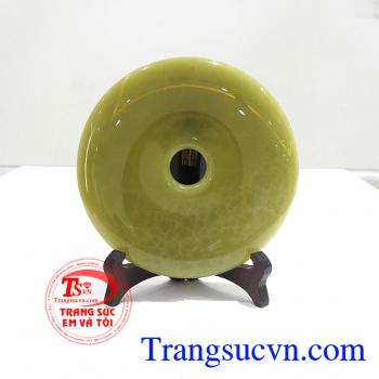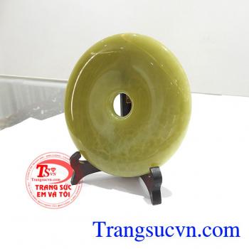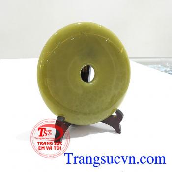 Đồng Tiền Bình An May Mắn chế tác bằng ngọc Pakistan thiên nhiên vân đẹp, chất lượng cao, Đồng Tiền Bình An May Mắn trong phong thủy là biểu tượng của nguồn tài lộc và của cải, Cát khí của nó không những làm gia tăng tài lộc mà còn đem lại nhiều may mắn về công danh, sự nghiệp, giải trừ hung khí. Đồng tiền phong thủy thường được bài trí ở đại sảnh, phòng khách, bàn làm việc nhằm mang lại may mắn, tài lộc và vận khí cho gia chủ.Loại sản phẩm: Ngọc Pakistan