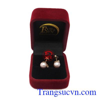 Hoa Tai Ngọc Trai Hạnh Phúc kiểu dáng tinh tế, thanh lịch, được chế tác từ vàng 14k, bảo hành 12 tháng, giao hàng nhanh trên toàn quốc
