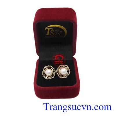 Hoa Tai Ngọc Trai San Hô kiểu dáng sang trọng, tinh tế