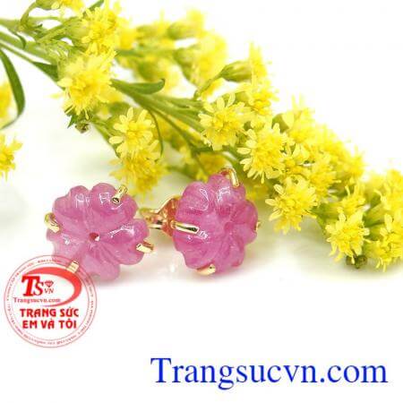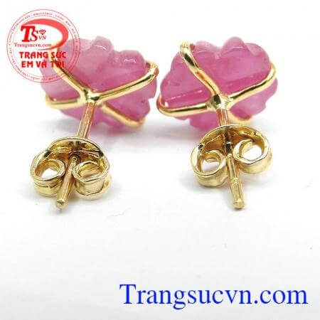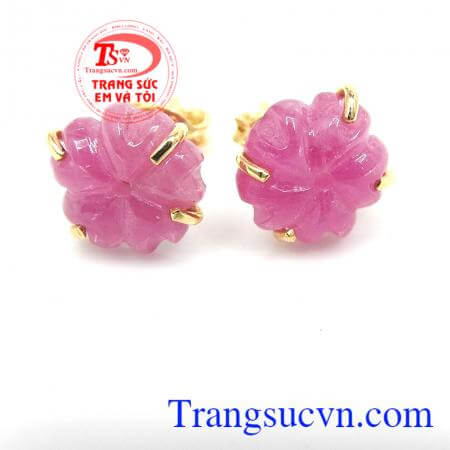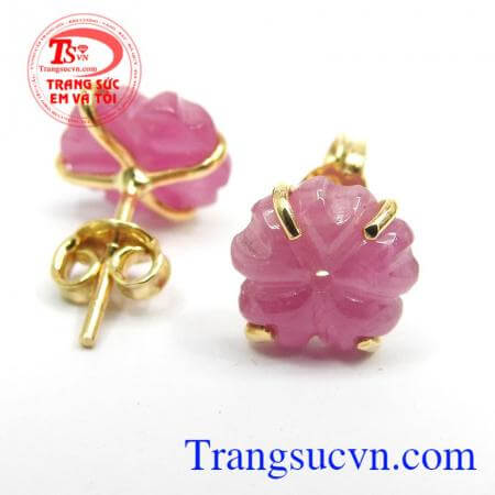Kiểu chế tác: Hoa tai vàng tây bọc đá quý Ruby, thiết kế tinh tế sang trọng