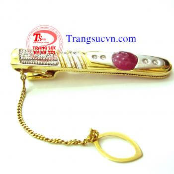Kẹp Caravat vàng tây gắn ruby thiên nhiên