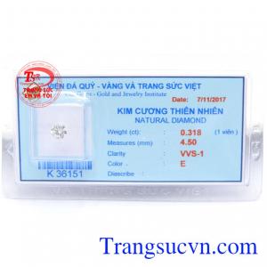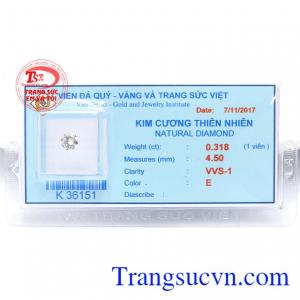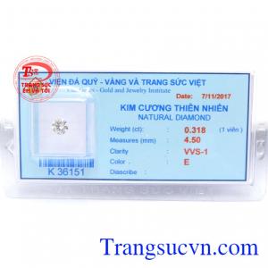 Kim Cương Thiên Nhiên 4.5 ly cao cấp, Kim Cương Thiên Nhiên 4.5 ly với độ cứng 10 trên thang Mohs, tượng trưng cho sức mạnh, sự may mắn và vĩnh cửu trong công việc và cuộc sống.Loại đá quý: Kim Cương Thiên Nhiên
