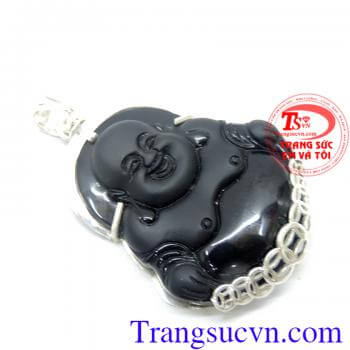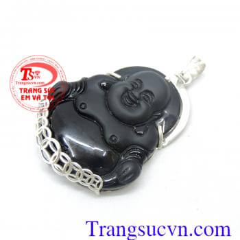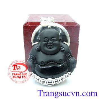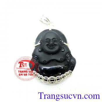 Mặt bạc phật di lặc đá Obsidian
