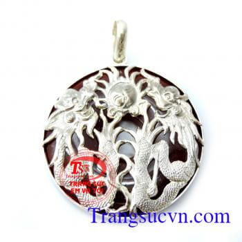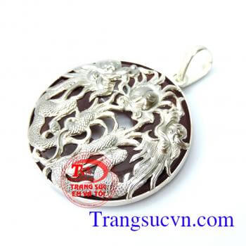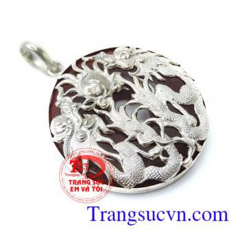 Mặt bạc rồng uốn lượn ngậm ngọc đỏ