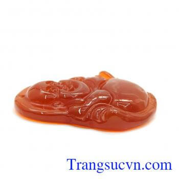 Mặt phật đá mã não đỏ được khắc phật di lặc. Di Lặc cũng được coi là biểu tượng của sự hài hòa, niềm vui vô tư lự. Chỉ cần nhìn ngắm khuôn mặt Phật, người buồn phiền cũng có thể thấy vui lên. Xoa bụng Phật được cho là mang lại vận may và sự tốt lành.