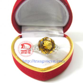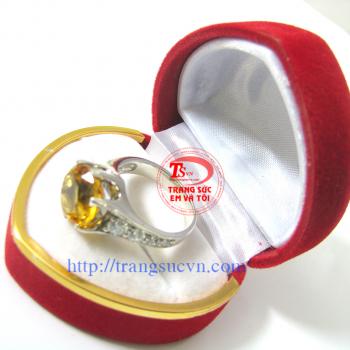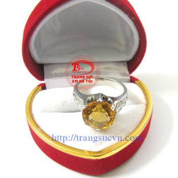 - Nhẫn được gắn 1 viên đá thạch anh vàng đậm thiên nhiên