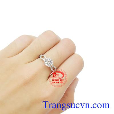 Nhẫn kim cương vàng trắng 18k, bảo hành 12 tháng, giao hàng nhanh trên toàn quốc