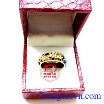 Hình ảnh: Nhẫn mã não đen rồng vàng, Nhẫn nam đẹp