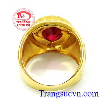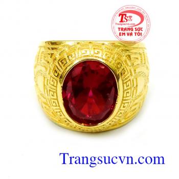 Nhẫn nam đá đỏ 10k hoa văn đẹp
