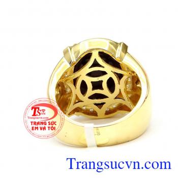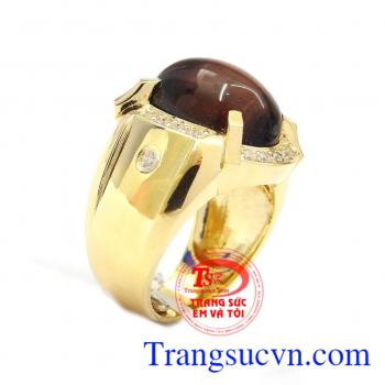Kiểu chế tác: Nhẫn vàng gắn đá chủ (Tiger's eye) Đá Mắt Hổ thiên nhiên, Nhẫn nam vàng đảm bảo chất lượng Uy tín, Đeo hợp phong thủy
