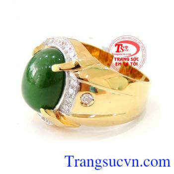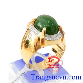 Nhẫn nam đá xanh lá cây, Nhẫn Nam Ngọc Cẩm Thạch, nhẫn nam đá quý vàng tây