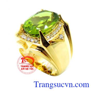 Kiểu chế tác: Nhẫn vàng gắn đá chủ peridot thiên nhiên, Nhẫn nam vàng đảm bảo chất lượng Uy tín, Đeo hợp phong thủy