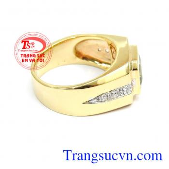 Kiểu chế tác: Nhẫn vàng gắn đá chủ peridot thiên nhiên, Nhẫn nam vàng đảm bảo chất lượng Uy tín, Đeo hợp phong thủy