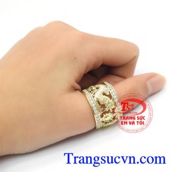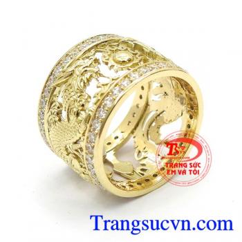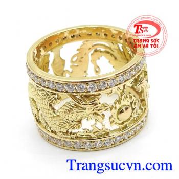Hình ảnh: Nhẫn nam rồng vàng 18k độc đáo, nhẫn nam tuổi thìn, viền nhẫn nam gắn đá.