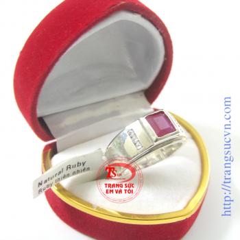 Nhẫn bạc đá ruby, Nhẫn nam ruby bac xi vàng