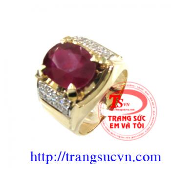 Nhẫn nam vàng tây 18k gắn đá ruby thiên nhiên với kiểu dáng chế tác đẹp phong cách và đẳng cấp cùng
