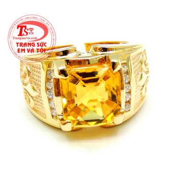 Kiểu chế tác: Nhẫn vàng 14k gắn đá thạch anh vàng, Nhẫn nam vàng đảm bảo chất lượng Uy tín, Đeo hợp phong thủy
