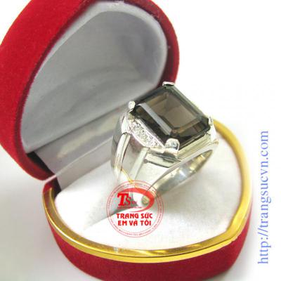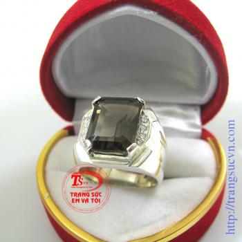 Nhẫn nam thạch anh ám khói