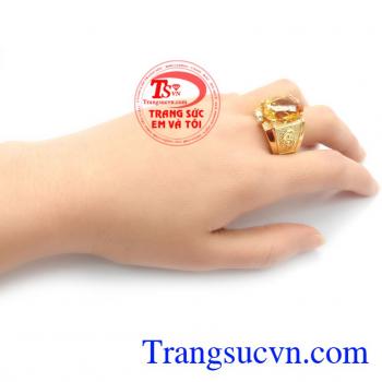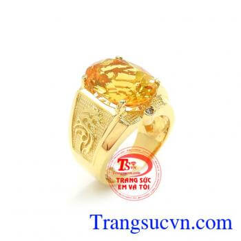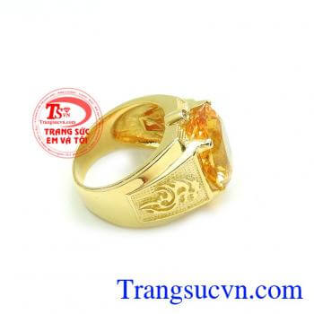 Kiểu chế tác: Nhẫn vàng 10k gắn đá thạch anh vàng, Nhẫn nam vàng đảm bảo chất lượng Uy tín, Đeo hợp phong thủy