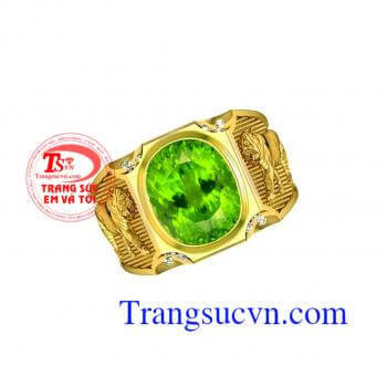 Kiểu chế tác: Nhẫn nam tuổi Dần Mệnh Hỏa gắn đá peridot thiên nhiên vàng 18k thiết kế 3d sang trọng.