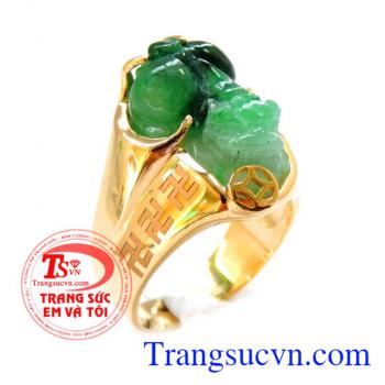 Kiểu chế tác: Nhẫn nam tỳ hưu vàng màu tinh tế gắn tỳ hưu đá thiên nhiên, mang lại may mắn và hộ mệnh, đeo nhẫn nam tỳ hưu mang lại may mắn, chiêu tài của cải, phú quý.