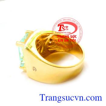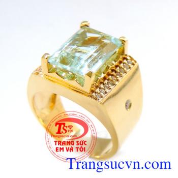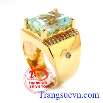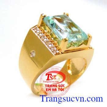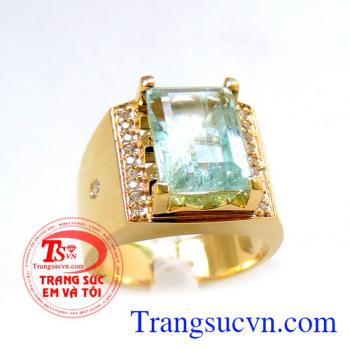 Kiểu chế tác: Nhẫn vàng gắn đá chủ Aquamarine thiên nhiên, Nhẫn nam vàng đảm bảo chất lượng Uy tín, Đeo hợp phong thủy