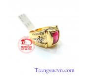Nhẫn nam vàng tây gắn đá đỏ sang trọng lịch lãm