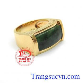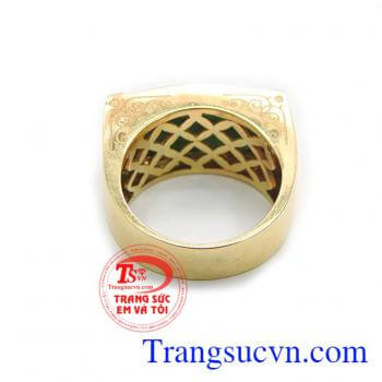 Kiểu chế tác: Nhẫn vàng gắn đá chủ Nephrite thiên nhiên, Nhẫn nam vàng đảm bảo chất lượng Uy tín, Đeo hợp phong thủy