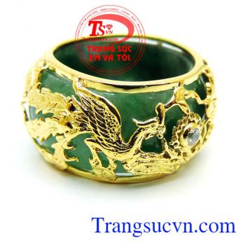 Chiếc Nhẫn ngọc rồng phượng vàng 18k chất lượng vàng đảm bảo tinh tế và sang trọng,nhẫn ngọc đeo bền đẹp,rồng phượng biểu tượng của sự cao quý và may mắn, Nhẫn ngọc đeo ngón cái, ngón giữa, ngón trỏ hoặc ngón nhẫn đều đeo được.Loại sản phẩm: Nhẫn Ngọc Rồng Vàng