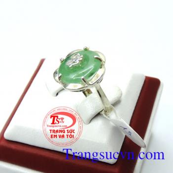 Nhẫn nữ cánh hoa chữ Phúc, nhẫn nữ ngọc cẩm thạch khắc chữ Phúc, đeo phong thủy, cầu mong vận may, bán nhẫn ngọc cẩm thạch đẹp, giao hàng toàn quốc.Loại sản phẩm: nhẫn nữ.
