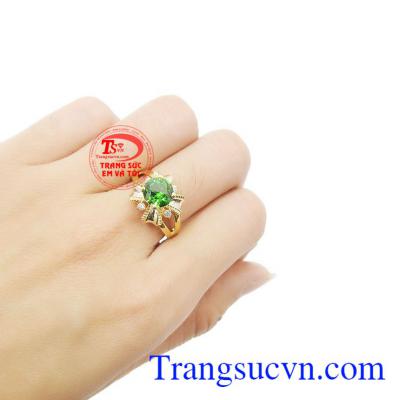 Nhẫn nữ đá xanh vàng là sản phẩm nhẫn nữ sang trọng, kiểu dáng đẹp
