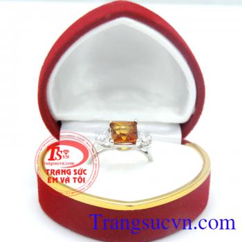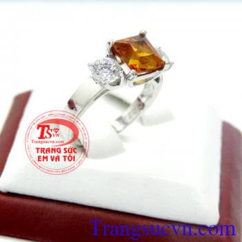 Nhẫn nữ mệnh kim, nhẫn nữ thạch anh vàng đẹp, trong suốt, nhẫn nữ vàng trắng 14k sáng, thiết kế sang trọng.