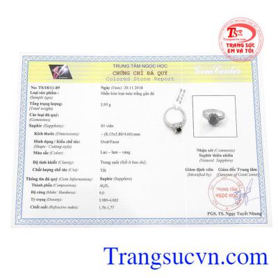 - Trọng lượng đá Sapphire: 1.69 Ct