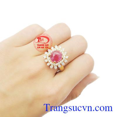 Nhẫn nữ sapphire hồng thiên nhiên vàng tây dành cho nữ vàng đảm bảm, sản phẩm được thiết kế 3D, được thiết kế sang trọng, quý phái