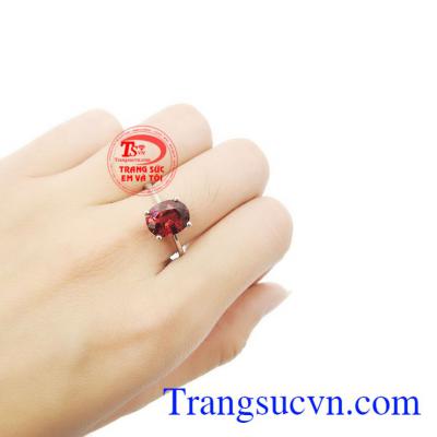 Nhẫn nữ vàng tây đá Granet thiên nhiên hợp với người mệnh hỏa và mệnh thổ
