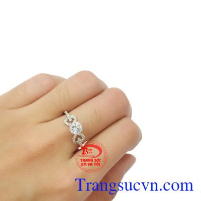 Nhẫn nữ vàng trắng 18k gắn kim cương nhân tạo, bảo hành 12 tháng, giao hàng nhanh trên toàn quốc