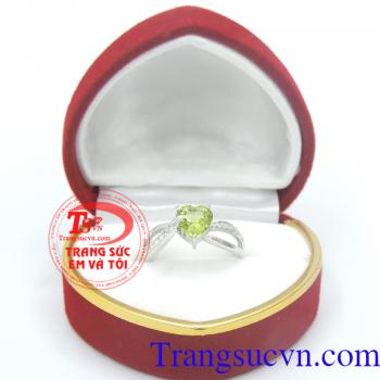 Nhẫn peridot tình yêu, nhẫn peridot thiên nhiên hình trái tim tình yêu bền lâu, nhẫn nữ vàng trắng thiết kế tinh tế, đẹp, nhẫn peridot phong thủy, sang trọng.Thương hiệu: Trang Sức Em Và Tôi