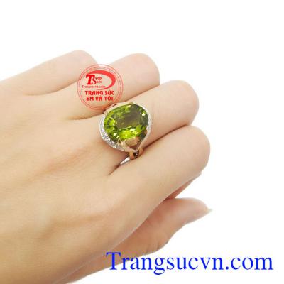 Nhẫn vàng đá Peridot Mệnh Hỏa là sản phẩm nhẫn nữ vàng tây được gắn đá peridot thiên nhiên