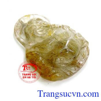 Phật di lặc thạch anh tóc tài vượng. Ông Phật Di Lặc được xem là biểu tượng cho sự ổn định, niềm vui và hạnh phúc. Chỉ việc nhìn ngắm khuôn mặt Phật, dù đang lo âu, muộn phiền thì cũng tan biến hết. Một số người còn tin rằng xoa bụng Phật được coi là đem tới may mắn và sự tốt lành. Ngoài ra, mặt dây chuyền hình Phật Di Lặc còn biểu tượng cho sự phát đạt, biểu tượng cho sự quyền quý như đồng tiền, thỏi vàng và chiếc túi được xem là đựng vô số châu báu.Loại đá quý: Thạch anh tóc thiên nhiên