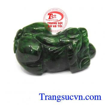 Tỳ hưu jadeite, tỳ hưu được chế tác từ ngọc jadeite có màu xanh ngọc và sáng bóng. Đây là loại ngọc khá phổ biến vì tính tiện dụng và tính chất may mắn. Tỳ hưu jadeit.Tên sản phẩm: Tỳ hưu