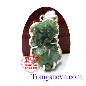 Tỳ hưu jadeite thiên nhiên bọc bạc