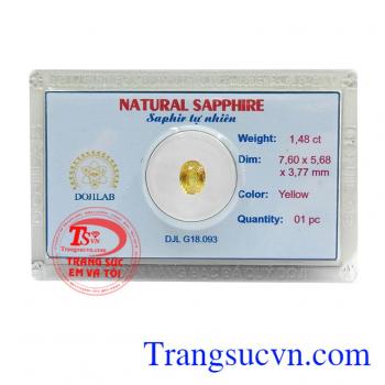 Viên Saphire vàng sang trọng là sản phẩm đá quý cao cấp, ép vỉ cẩn thận,có giấy kiểm định, sản phẩm mang lại nhiều may mắn, tài lộc cho người đeo. Viên Saphire vàng sang trọng phù hợp làm nhẫn nữ, nhẫn nam, mặt dây chuyền, lắc tay.Loại đá quý: Sapphire vàng